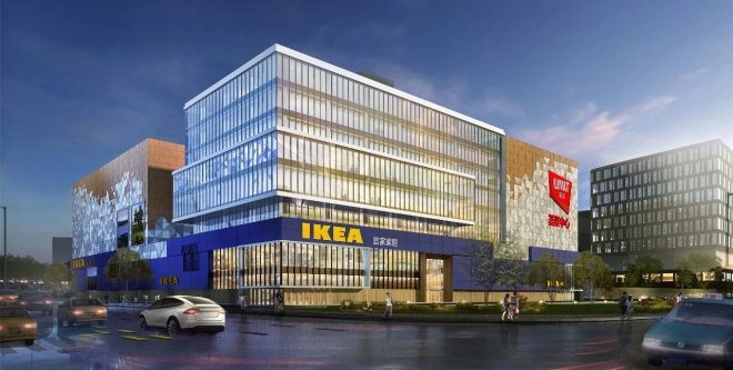 宜家全球較大投資項目薈聚中心上海臨空項目位于福泉路西側、協和路東側、金鐘路北側、北翟路南側,擬建1幢地上8層、地下4層的綜合商辦體。總建筑面積約43.7萬平方米,其中:地上建筑面積約17.9萬平方米,